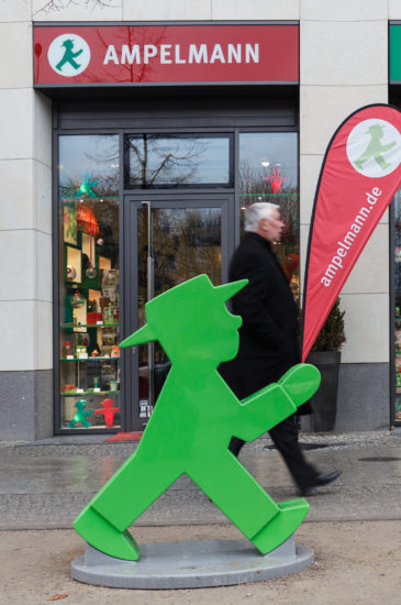 The most literal, and perhaps most powerful, example is the Berlin Wall. Though most of the physical architecture has long been dismantled, its effects can still be felt in myriad ways. At Checkpoint Charlie, the infamous crossing between East and West Berlin during the Cold War, the city’s fractured legacy is poignant. But one can also see subtler traces in many of the city’s edifices, and even the landscape. Walking the streets, I came across pieces of a terrifying history that were constantly being excavated and memorialized. Blemished surfaces and gaping holes recall violent destruction, while the jaunty Ampelmann (an archetypal pedestrian crossing signal) enjoys cult status as one of the few cultural features of communist East Germany to have survived the fall of the Iron Curtain.