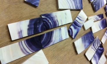 One such artist is Frank Rapoza. A modern Renaissance man, he had a career in shipbuilding before turning to residential carpentry. A yachtsman and fisherman in his free time, Frank has a knack for harvesting treasure from the ocean. Pulling from maritime traditions like sailor’s valentines and cameo-making, Frank creates both figurative and abstract mosaic compositions from sea glass, shells, and wampum (polished quahog shells prized as trading currency in Wampanoag times). Each of the finished rectangular panels is framed with ebony – cargo washed ashore from the “Dolphin,” which wrecked off of Cuttyhunk in 1854. Frank secures the frame corners with pins carved from swordfish bill. Taking native techniques and materials and reinterpreting them, Frank creates jewel-like objects with a beauty greater than the sum of those parts. I have admired and collected his work over the years.