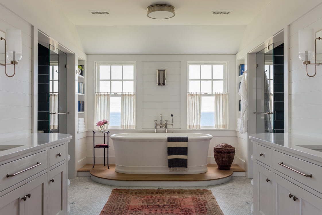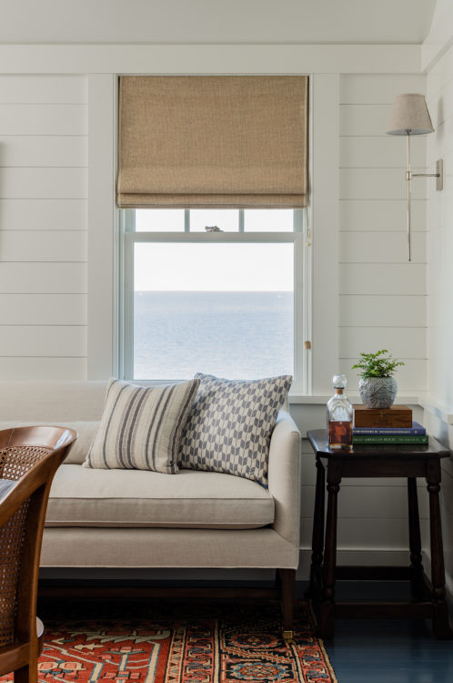 Located in a historic neighborhood with a commanding ocean view, “Big Bluff” was a beloved community fixture which succumbed to years of storms and deferred upkeep. Hutker Architects was charged with designing a new home in its place – to honor the character of the original, while adding gracious spaces for modern living and entertaining. Traditional materials, installed with modern techniques, are poised to shoulder generations of wind and weather. Wherever possible, fixtures and furnishings from the previous house were reused. Millwork and built-ins crafted by local artisans maintain a handmade feel throughout the house, while custom furnishings and curated antiques offer the feel of a space that has been loved by a family for years.