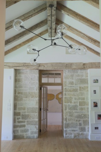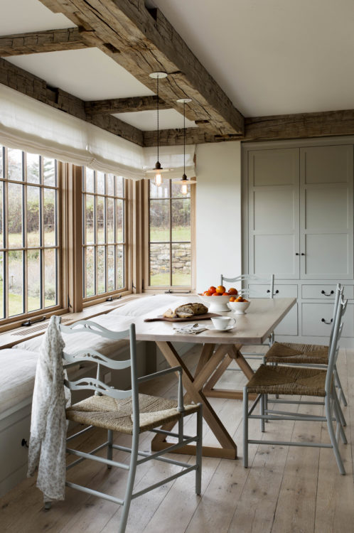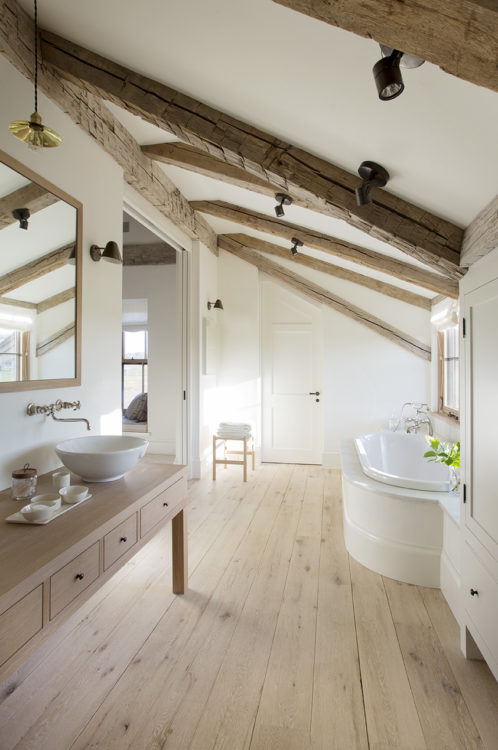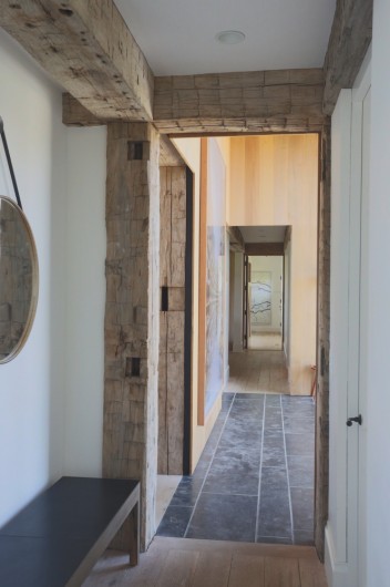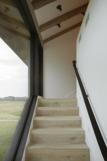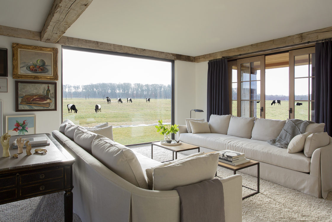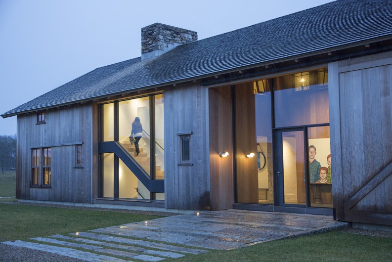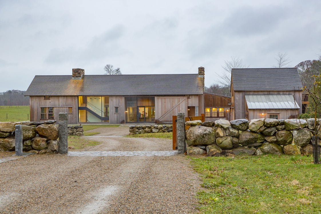 Inspired by farmhouses a couple had admired in Europe, this year-round home on Martha’s Vineyard is designed to resemble an old barn retrofitted for modern living. Reclaimed floors and a structural timber frame give the interiors a rustic, but refined sensibility, while a shed roof lends the guest annex the charming character of a lean-to. Set amidst more than 80 acres of beautiful countryside, seven outbuildings comprise a certified organic, working farm. Its heritage livestock breeds, cheese caves, and progressive solar energy profile take advantage of incredible surroundings across the seasons.