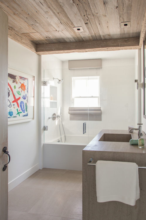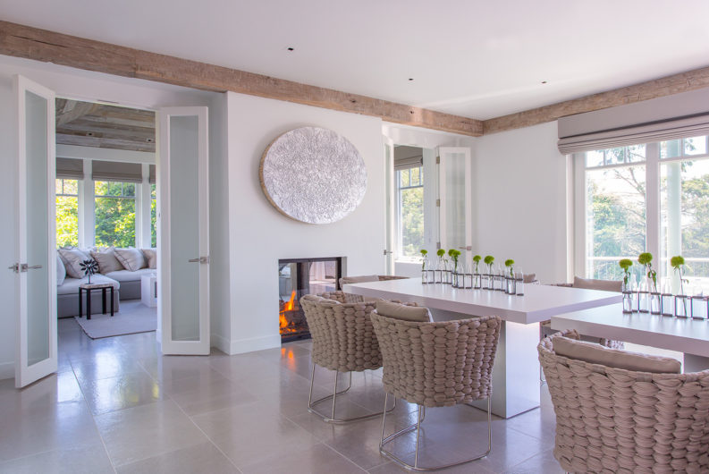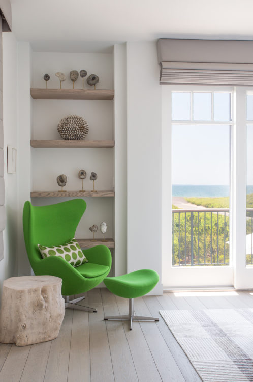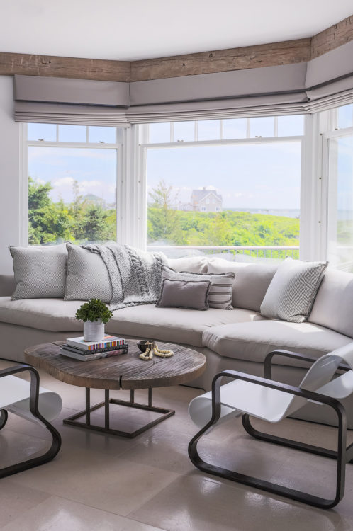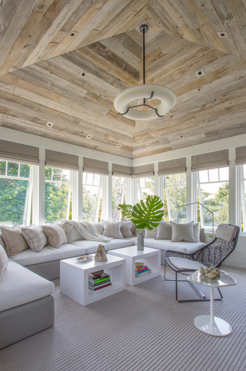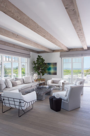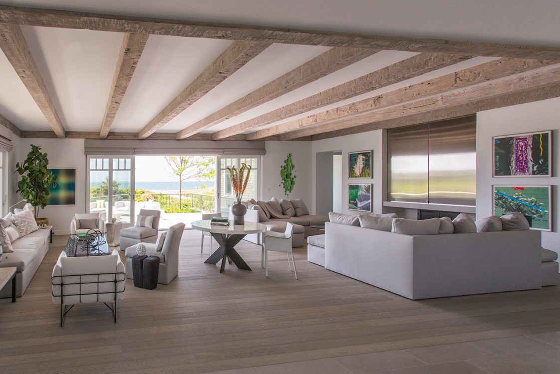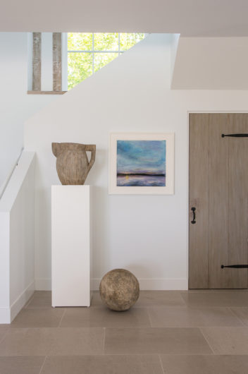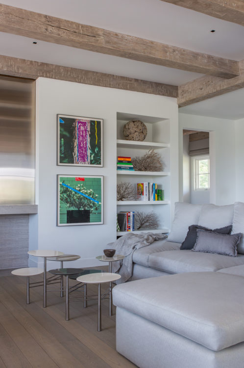 This homeowner wished for a house that spoke to the local Shingle Style tradition, but also felt open and comfortable for entertaining. Hutker Architects conceived a gambrel structure with two wings (one for family bedrooms and one for guests) arranged around a large central living area. Cottage style windows connect with historic homes in the area, inviting light from all four directions, while contemporary interior touches create an atmosphere suited to the family’s incredible modern art collection and active lifestyle.