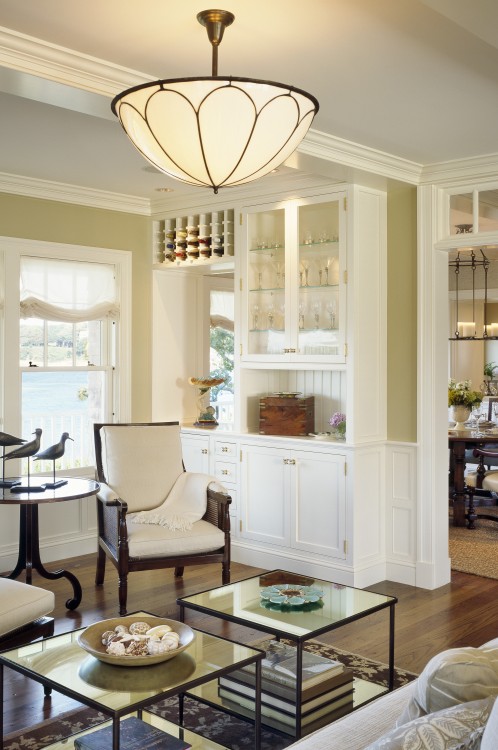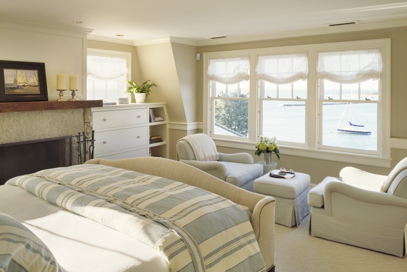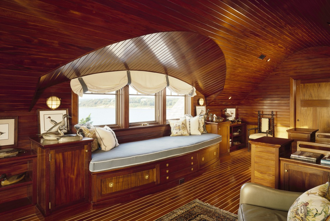 An icon on a peninsula in Buzzard’s Bay, this property is named for its historic lawn shade, which captures the leisurely summer ways of the Cape at the turn of the twentieth century. The gambrel design draws on the region’s shingle-style vocabulary to create a house that sits comfortably among its neighbors and maintains a strong connection to the site, while responding to the needs of contemporary family life. A third floor office, finished in teak and holly and reminiscent of a ship’s cabin, is tucked behind a charming eyebrow window.