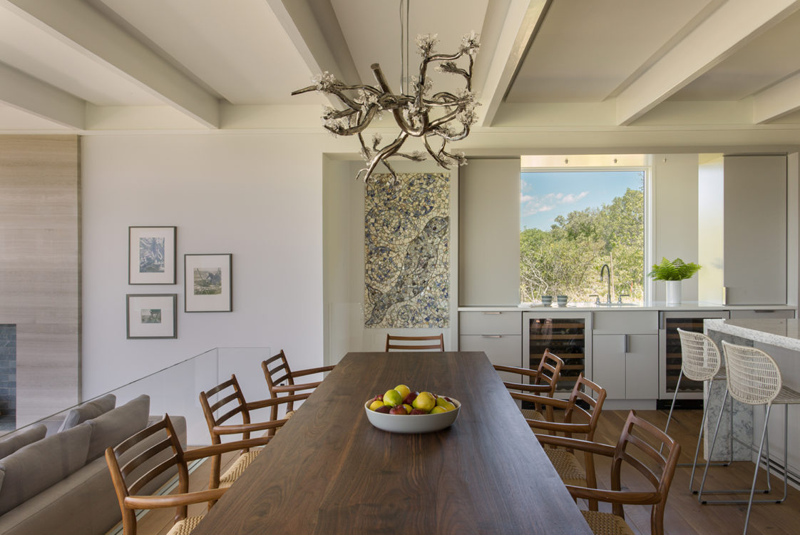 This home is the revival of an original designed by architect Steven Holl. Inspired by a passage in Melville’s Moby Dick, where Native Americans stretched animal hides over a beached whale skeleton for shelter, the house received a Progressive Architecture Citation in 1986 and an AIA National Honor Award in 1999. When the current owners acquired the property, years of neglect had taken their toll. Hutker Architects was hired to re-build the home in a manner that captured the spirit of the original. The team maintained Holl’s inside-out balloon frame – a rectangular prism with articulated wooden “bones” framing views of nature beyond, while incorporating features that add to its durability and narrative. Several defining new elements, such as an ambitious energy profile and additional living space, ensure that the home will prove both progressive and comfortable by contemporary standards.