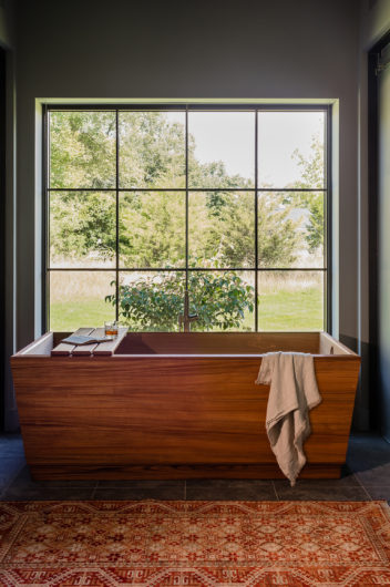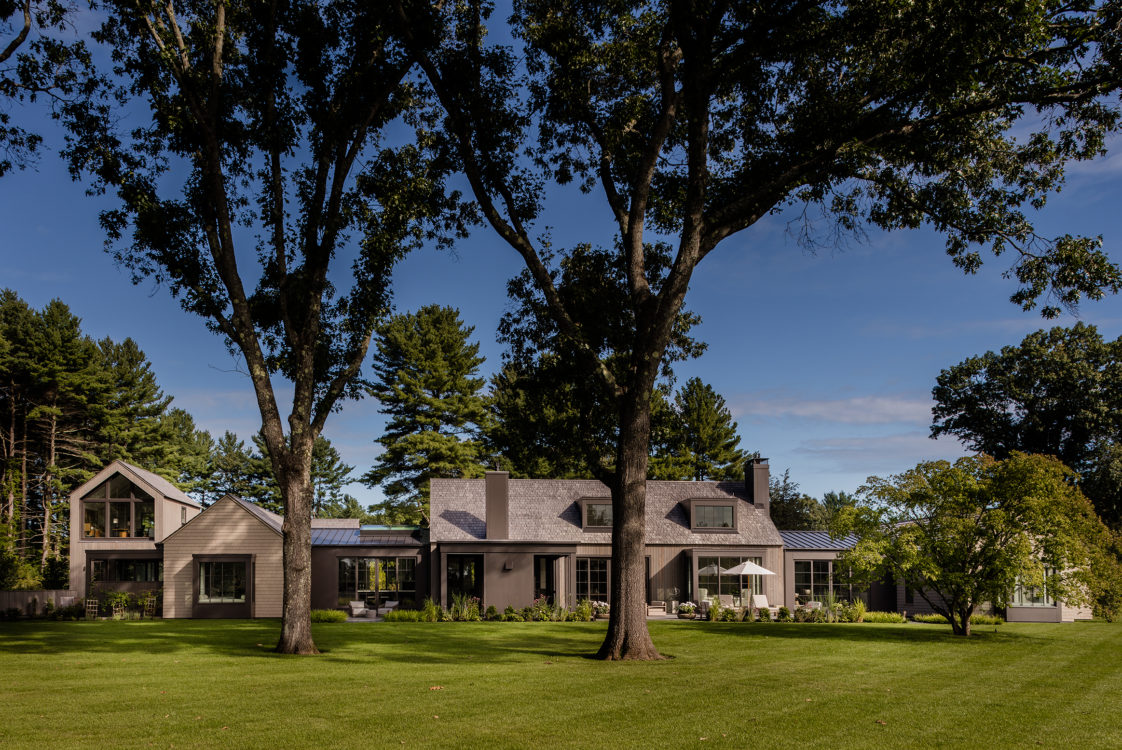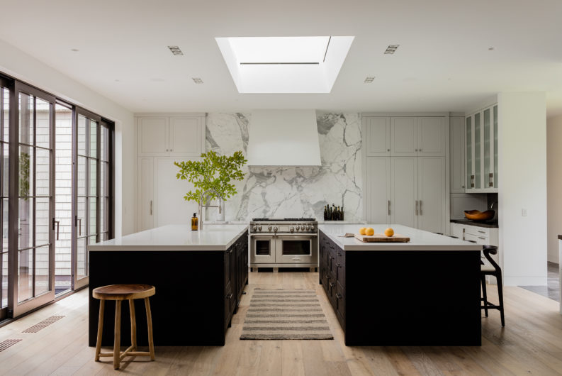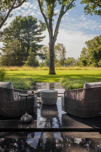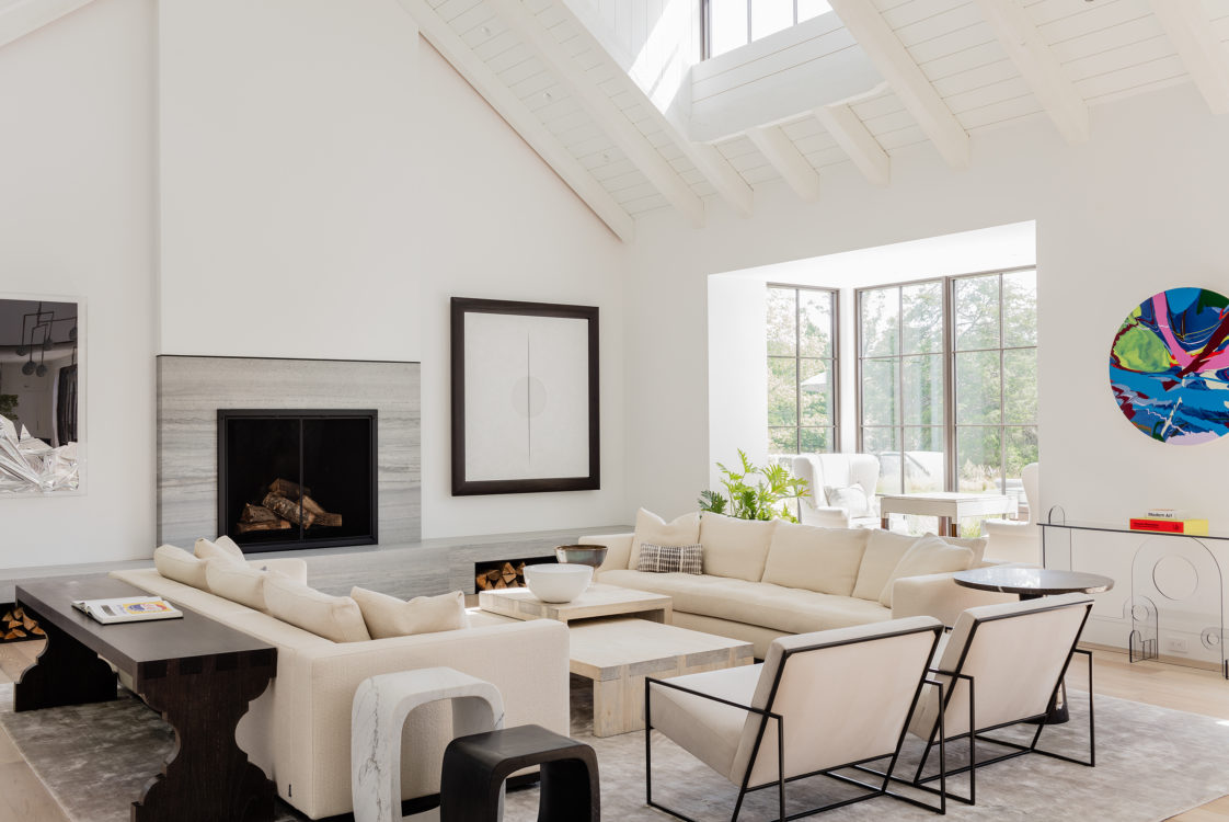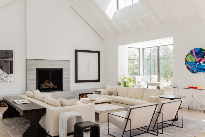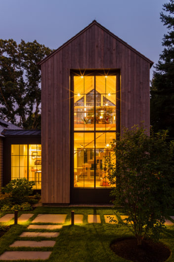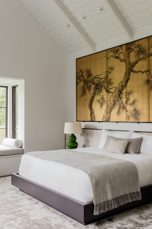 This home was designed to connect seamlessly with the outdoors while providing ample space to display a family’s incredible collection of contemporary art. Additionally, the clients wished for ample gathering spaces in the living and kitchen areas to spend time with their extended family. From entry, a gallery corridor runs the full width of the home, allowing for unobstructed viewing of paintings and sculpture while creating a circulation spine along which the home’s public and private spaces are aligned. Over-sized windows, skylights, and a water feature adjacent to the kitchen encourage frequent enjoyment of the home’s spectacular woodland setting.